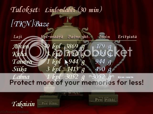 Itse linlon hyvät tulokset ovat vain 1520g siika ja 27,444kg 1h kisassa..  :-)
