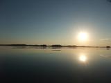 Aamulla kello soi 03.40 ja ehkä ensimmäistä kertaa allu-santeri oli ensimmäisenä valveilla  ;D Mä pystyin nousemaan vähän sen jälkeen ja samia sai herätellä pidempään, vaikka herättelyistä tuli kiitokseksi kiukkuisia ääniä ja potkuja. Vesillä kuitenkin oltiin kuitenkin vähän neljän jälkeen ja kyllä oli järvi hienon näköinen
