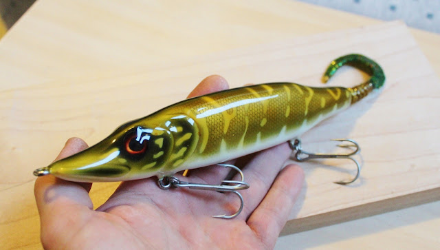 mie tein tälläsen tail bait kokeilun strategiset mitat tuollas on 28cm hantä venytettynä kokopituuteen ja runko pituus 19cm, painoa tolle on kertynyt 106g eli tämä nyt ei ihan pikku pulikoille ole tarkotettu :D