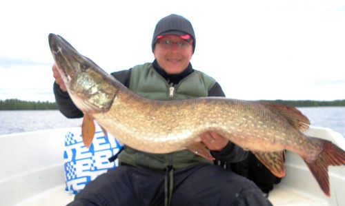 Viides kala siis mallia jalkapallo, vaaka heilui 8.98-9.04kg välillä. Lumpsautettiin kala takasin ja tuumasinkin kohta isälle, että tää kausihan alkaa ihan samoilla kaloilla mihin viime syksy päätty. Eikä kahta ilman kolmatta...reissun kuudes ja viimeinen hauki oli 5.12kg painoinen, mutta tällä kertaa melko laiha ja isopäinen luikero.
