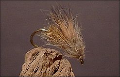 Häkilä: || Vaalea peurankarva, lyhyt takaviistoon sidottu.
